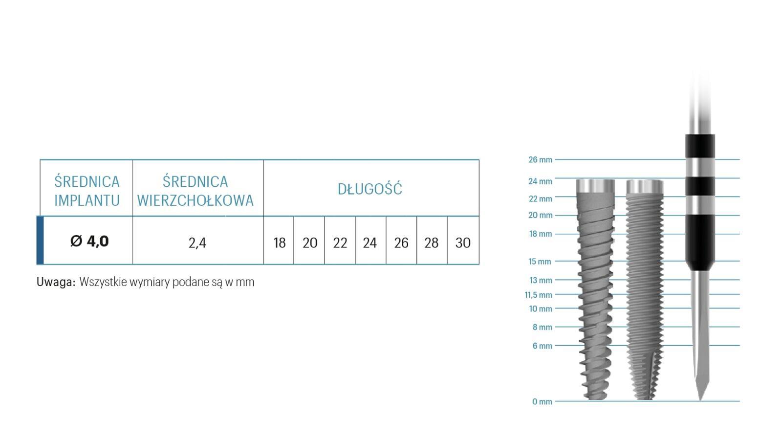 - Umożliwia wykorzystanie kości szczękowej otaczającej nos dzięki swojej specjalnej długości, aż do 26 mm.