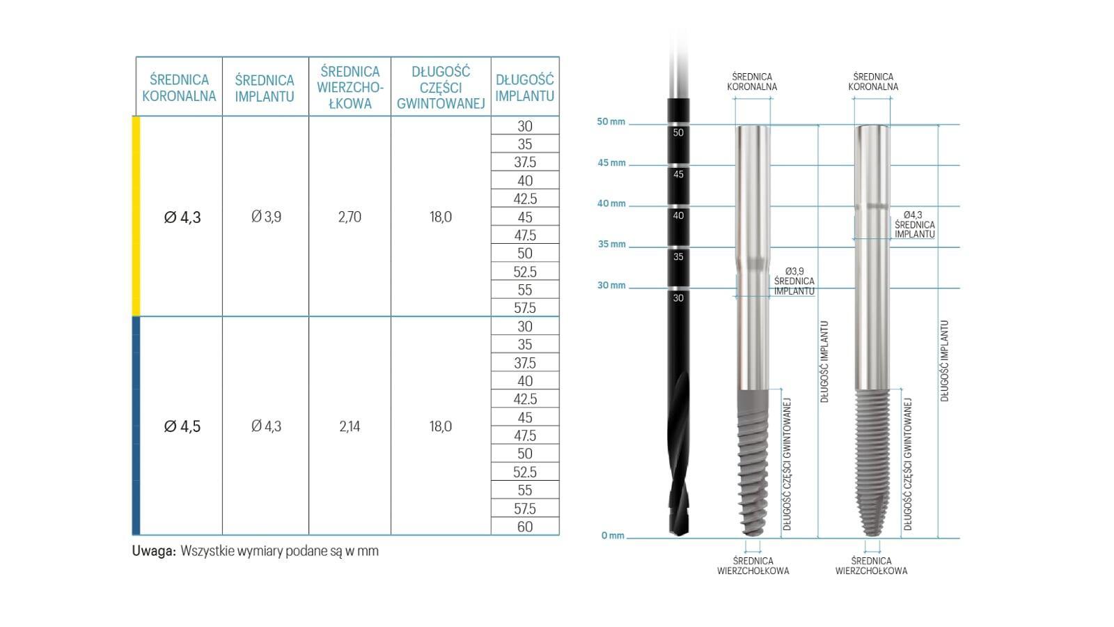 Średnice: Ø4,3 mm